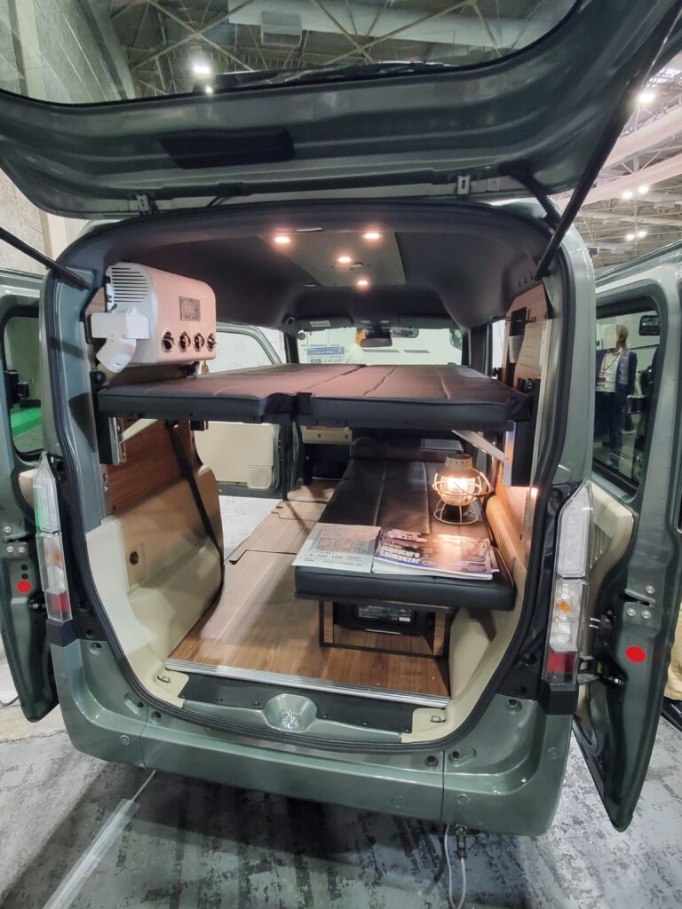 しかし、今回特に衝撃を受けたのが、展示台数が非常に多かった軽自動車ベースのキャンピングカーです!