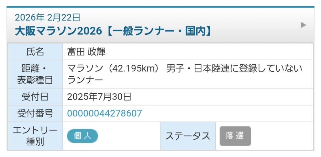 先日、大阪マラソン2026の抽選結果が発表されました。結果は…